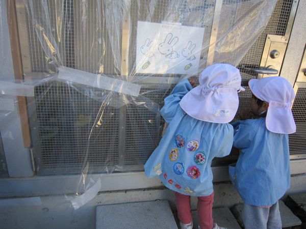うさぎやにわとりを見に行きました。「にわとりさ~ん!」「うさぎさ~ん!」と声をかけていました。