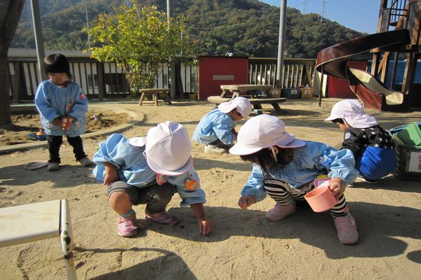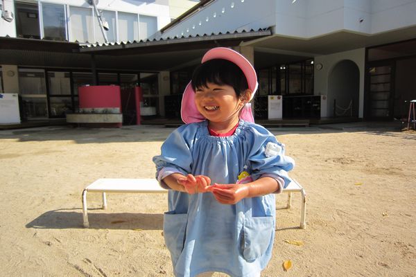 園舎裏に落ちていたどんぐりを園庭に広げて、どんぐり拾いも楽しみました。