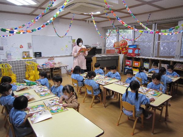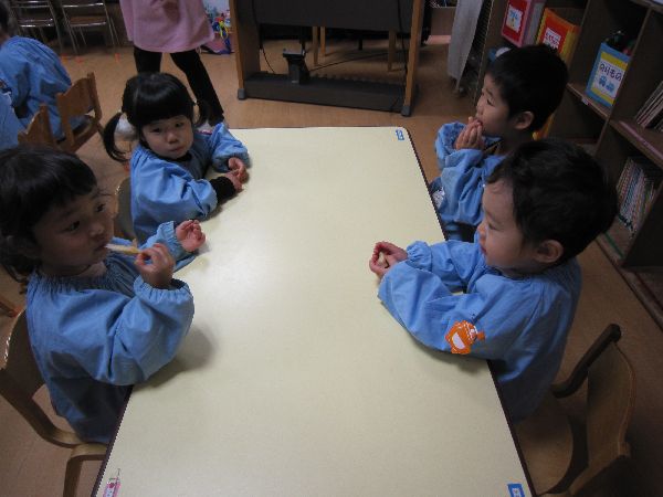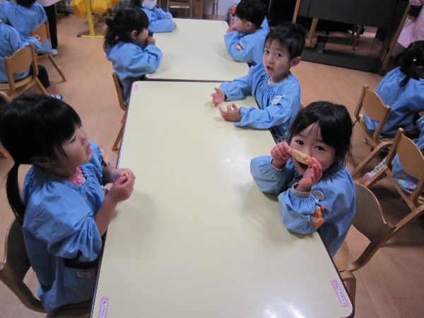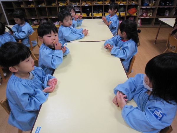 2022/12/07 ひよこ組さん おもちをいただきました!/月刊絵本を見たよ!