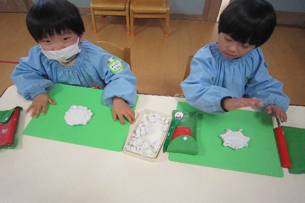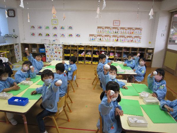 絵本を見た後はみんなで粘土遊びをしました。