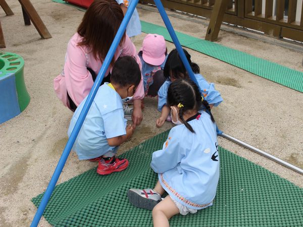 今日から、分散自主登園が始まりました。今日は、うさぎ組とぞう組の登園でした。戸外で、しっかり遊びました。久しぶりに、先生やお友達に会えてうれしかったね♪