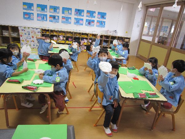 今日は2月の作品展に向けて作品を作りました!今まで粘土遊びをしてきましたが、今日はいつもと違う紙粘土を使って製作をしました♪初めて触る紙粘土は「かるいね~」「もちもちしてる!」と不思議な気持ちになりました!形づくりも模様も上手に出来て、素敵な作品が出来ました。今度は乾かして絵の具で色を付けます♪