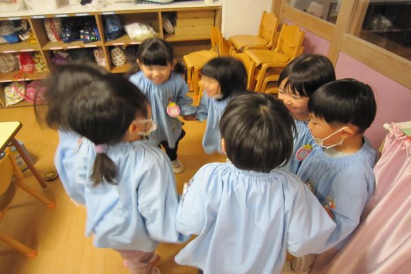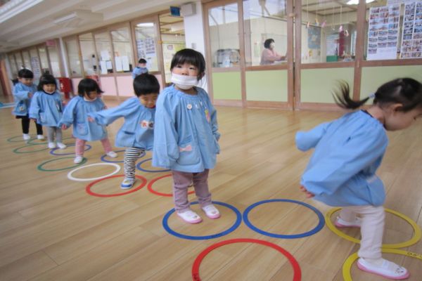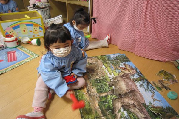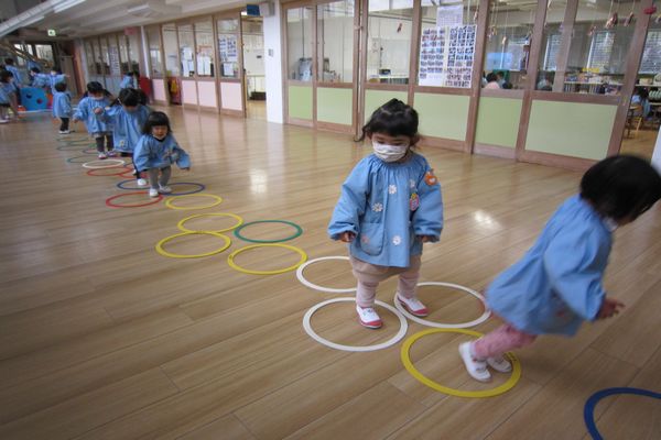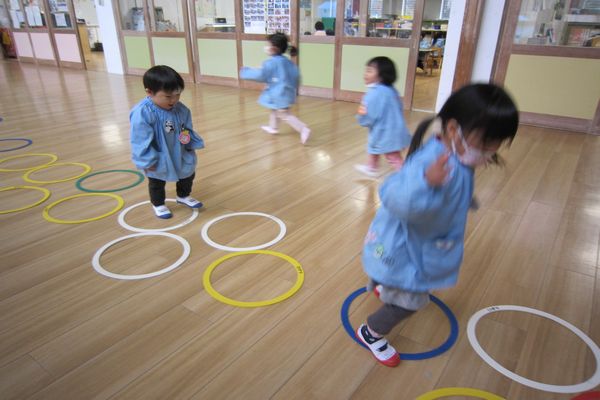 いちご組さんのお部屋に遊びに行って、パズルをしたり、ホールでケンケンパをしたり、いつもとは違う遊びを楽しんでいるお友達もいました♪