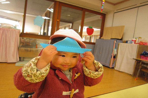 たくさん遊んだ後は、おりがみで帽子をつくって遊びました!