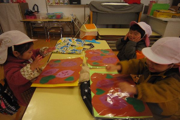 いちご組さんの登園日は、今年も残すところあと1日!2学期に作った製作を今日持ち帰りました!作品を見ながら、「ここ、たくさんぬったよね?」「つくるのたのしかった!」と、思い出を振り返りながら、持ち帰りの準備をしました。