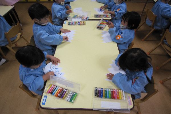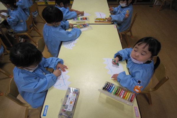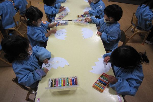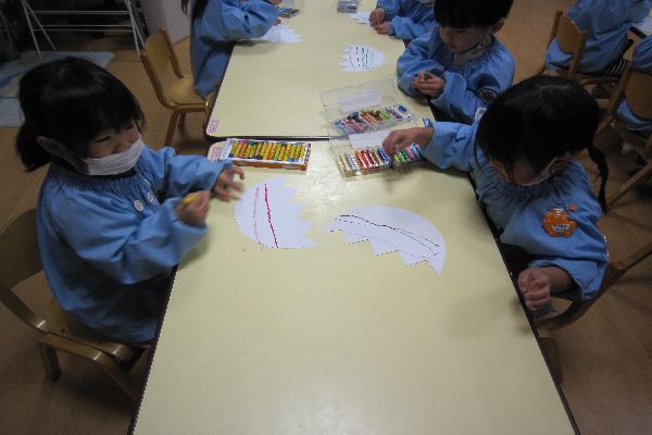 2023/01/13 ひよこ組さん たまごに模様を描きました!