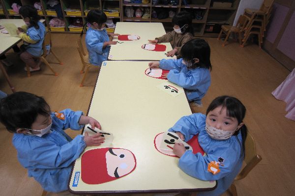 2023/01/19 ひよこ組さん だるまを作ったよ!