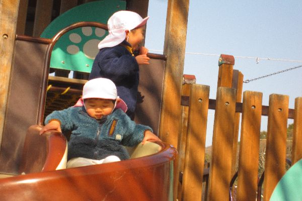 いちご組さん、今日も元気いっぱいに登園してきました。ひよこ組さんと一緒に外で楽しく遊びました。少し寒い日でしたが、子どもたちは元気いっぱいです!