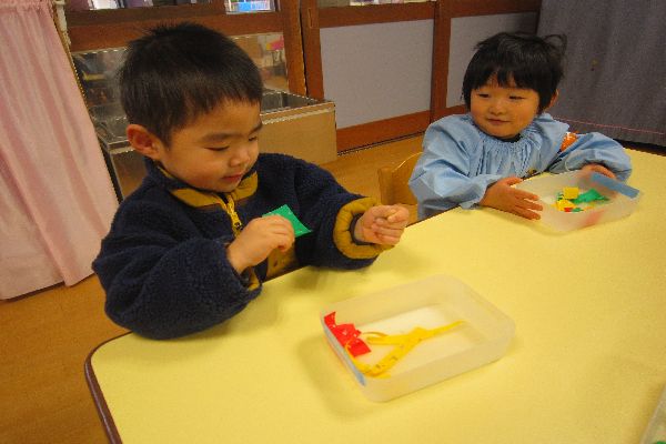 2023/01/20 いちご組さん、ひよこ組さんと製作をたのしみました!