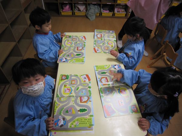 月刊絵本の1月号を見ました。凧あげのおはなし・お友達と遊ぶ時のお約束・やぎさんゆうびんの歌など楽しく見ました。