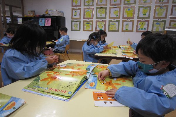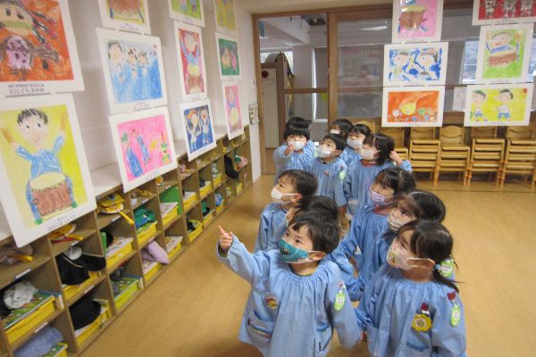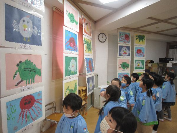 2023/02/01 年少組 作品展の作品を見て回りました!月刊絵本を読みました!