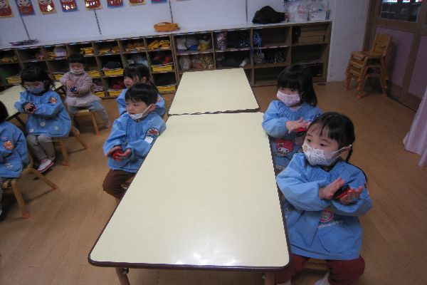 2023/02/06 ひよこ組さん カスタネットをしたよ!