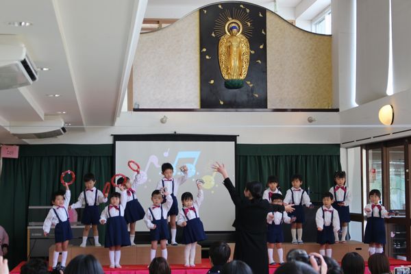 2部は、ことり組さんのお遊戯会でした。おうちの人の前で、いっしょうけんめいがんばりました!