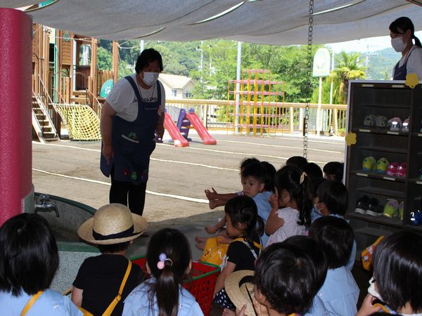 6月に入り、はだし保育が始まりました!みんなで、外でのはだしでの過ごし方について、話を聞きました。はやくみんなではだしであそびたいね!きっと気持ちいいよ~♪