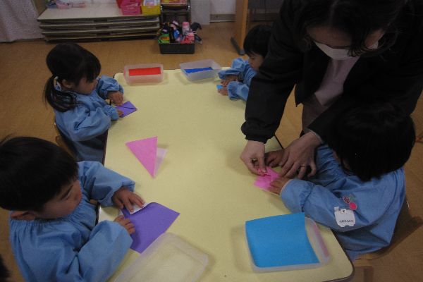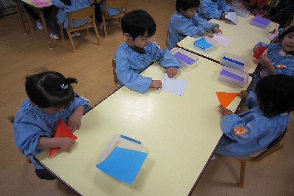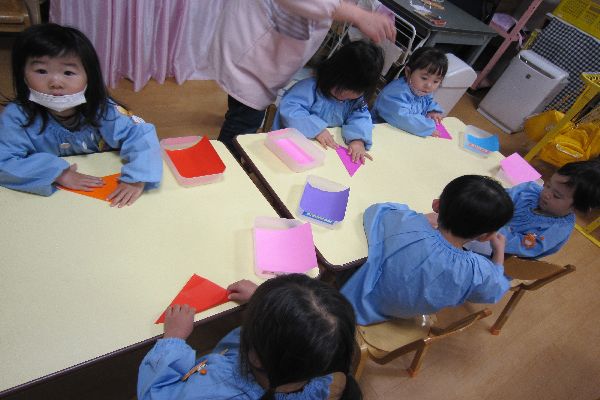 2023/03/06 ひよこ組 折り紙〈チューリップ〉