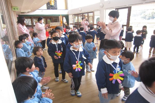 幼稚園のみんなでホールに集まってお別れ式をしました。