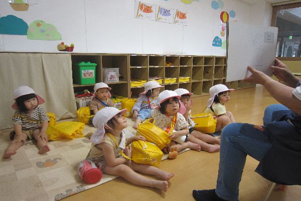 お帰りの会では、真剣に紙芝居を見ていました。