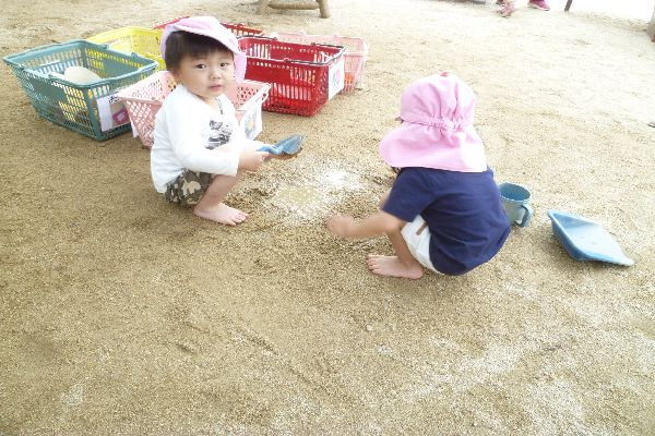 「はだしきもちいい~」「たのしい!!」っと裸足で遊ぶことを楽しんでいました!
