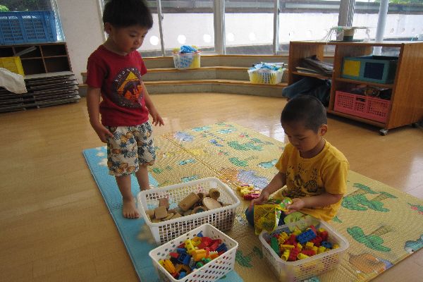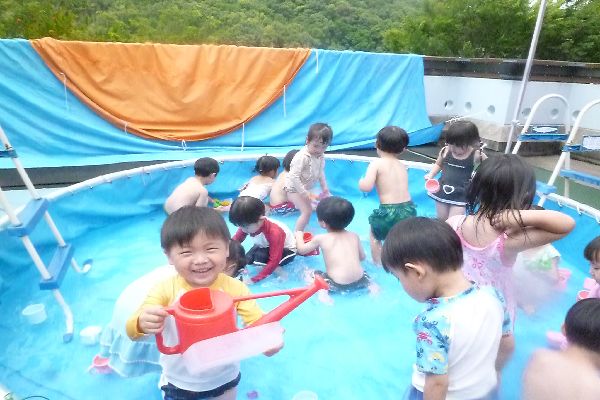 プールをお休みのお友達も、近くでおもちゃで遊んだり一緒に楽しみました♪