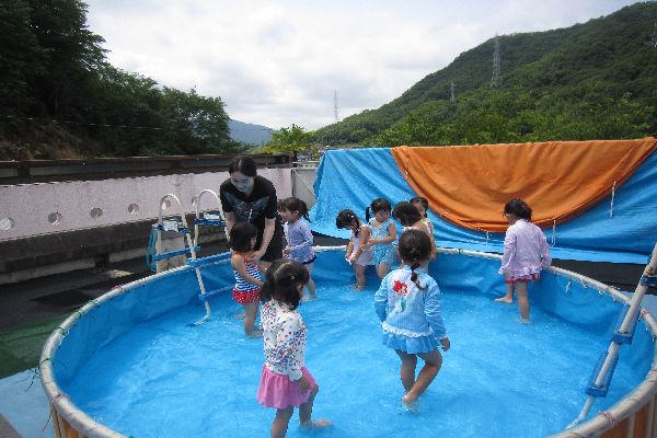 今週は楽しみにしていたプール遊びをすることができました☆彡初めてのプールにドキドキしながらも、冷たい水にふれると「気持ちいい~!」ととっても喜んでいました♪