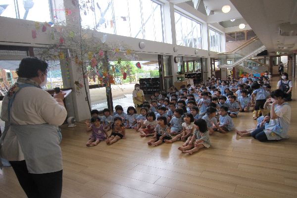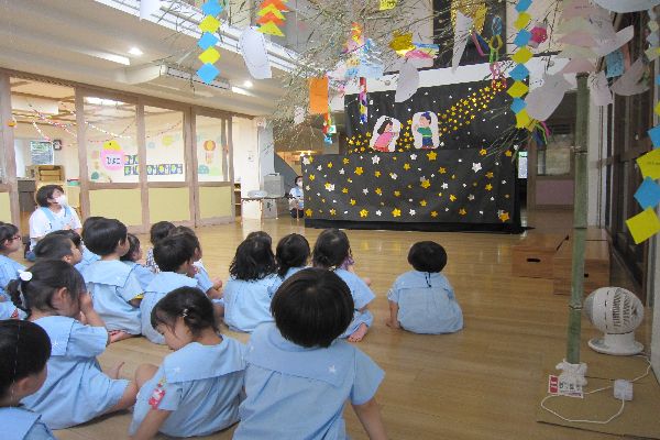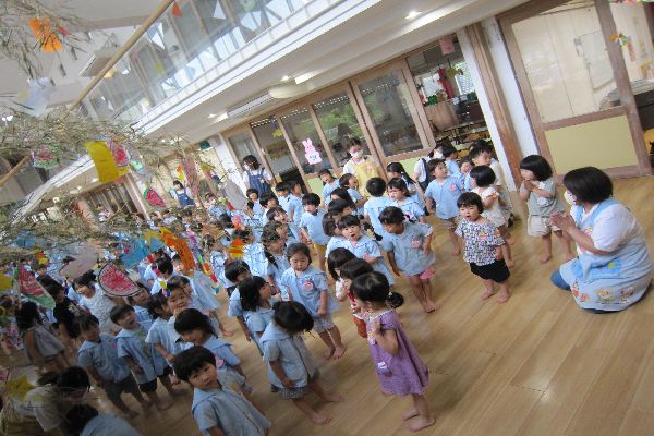 今日はホールに集まって、七夕まつりがありました!