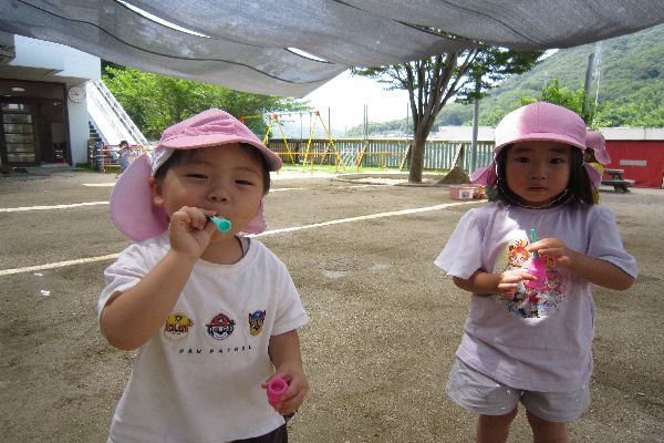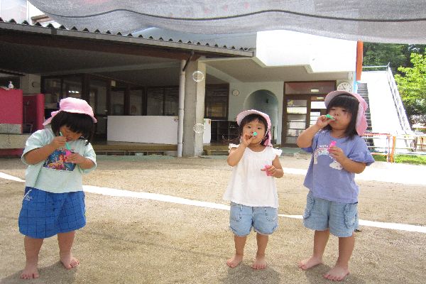 今週は晴れた日にプール遊びと、しゃぼん玉をしました♪