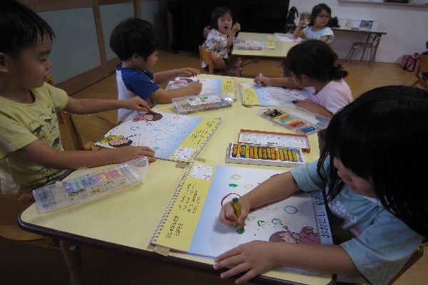 しゃぼん玉をした後は、クレヨン遊びをして上手にしゃぼん玉を描きました!先と線をつなげて上手な丸を描く事ができました☆彡