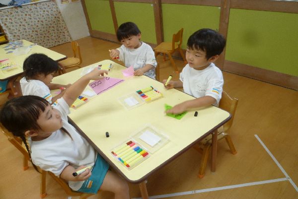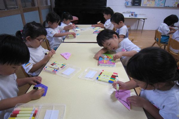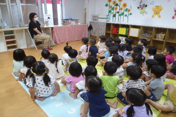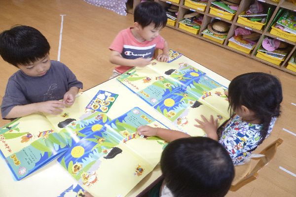 9月号の月刊絵本も読みました。みんなで秋の虫のシールを貼ったり、お月見について知ったりして面白かったね!