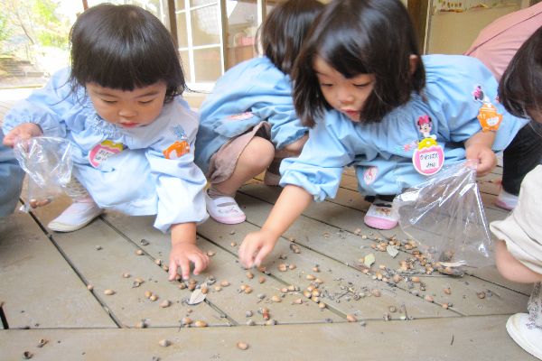 お散歩をしてどんぐり拾いもしました。