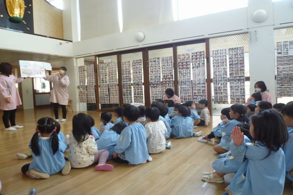地震が来たときはどんなふうに避難したらよいかみんなでお話も聞きました。