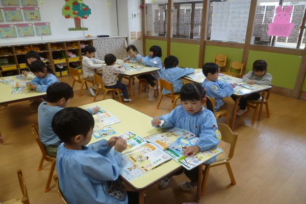 避難訓練(不審者)もしました。怖い人に見つからないように静かに逃げる練習をして、みんなでお話を聞きました。