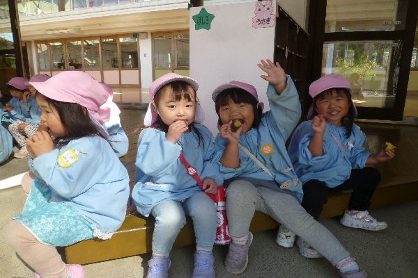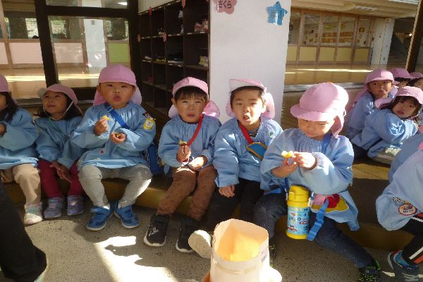 火曜日はみんなで焼き芋パーティーをしました。朝から焼き芋の焼けるいい匂いがしてきて「早く焼きいも食べたい!」「きょうはやきいもだ―!」と喜んで楽しみにしていました。