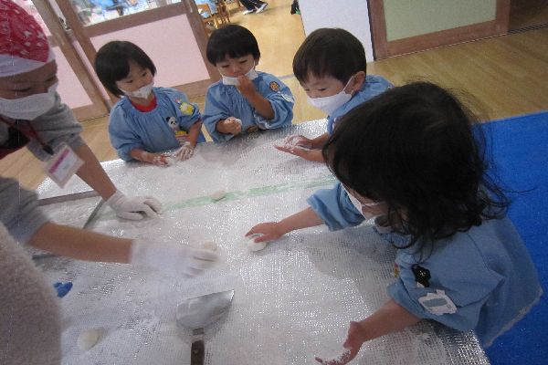 できたてのお餅を自分で丸めて