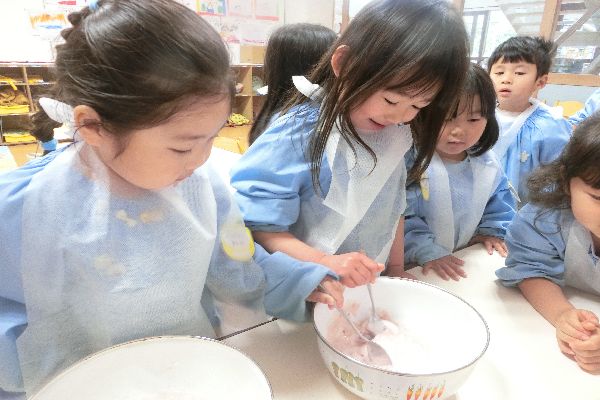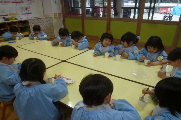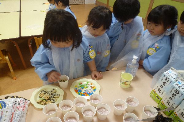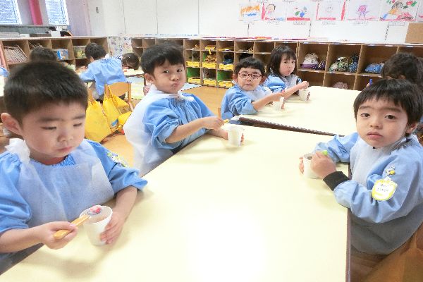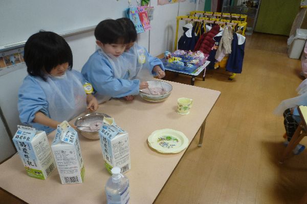 今日は2月のお誕生日会でみんなでフルーチェを作りました。