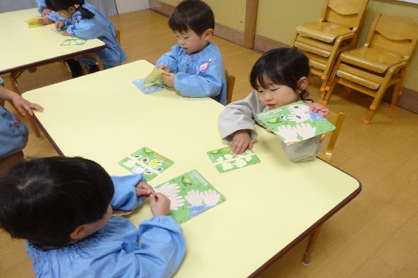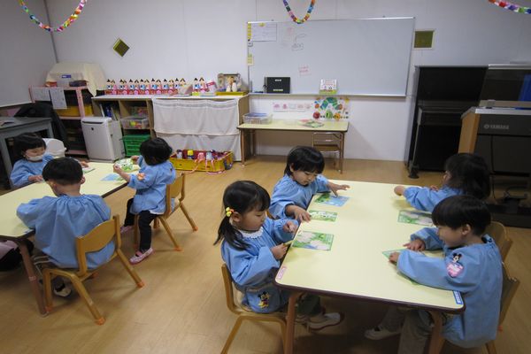 シールを貼ったり、季節の話を聞きました。