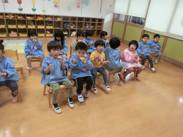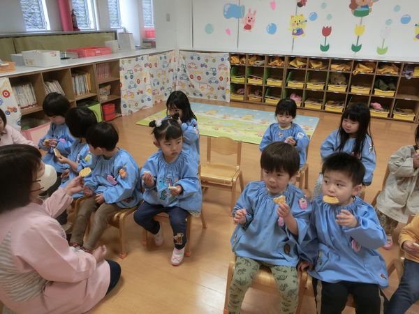 楽しい幼稚園生活、一週間が過ぎました。はじめの11時降園ではみんなで美味しいおやつをいただきました☆彡