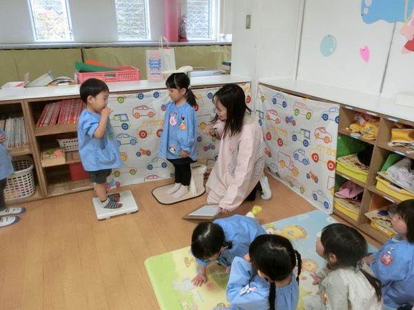 大きくなっているかな?と身体と体重を測定しました!上手に測ることができたね!