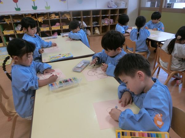 5月の母の日に向けて製作をしました!お母さんのお顔を思い浮かべながら上手に描いたり、カーネーションのお花も上手に作ることができました♡楽しみにしていてくださいね^^