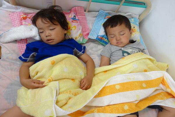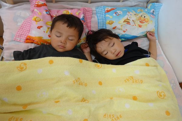 たくさん遊んだら、ご飯を食べてお昼寝タイムです。