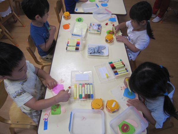 幼稚園でかたつむりを見つけたお友達もいました☆彡かたつむり製作で、完成したかたつむりをお散歩させて楽しく活動しました!マーカーを使って上手に描くことができました♡