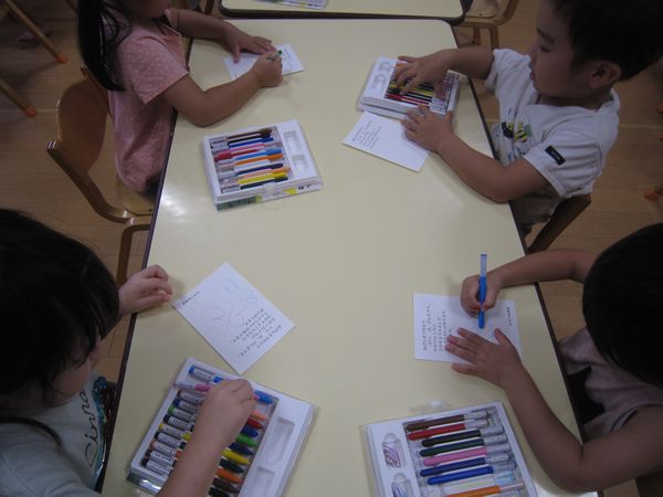 敬老の日に向けて、おじいちゃんおばあちゃんにはがきを書きました。心のこもったはがきになりました♡