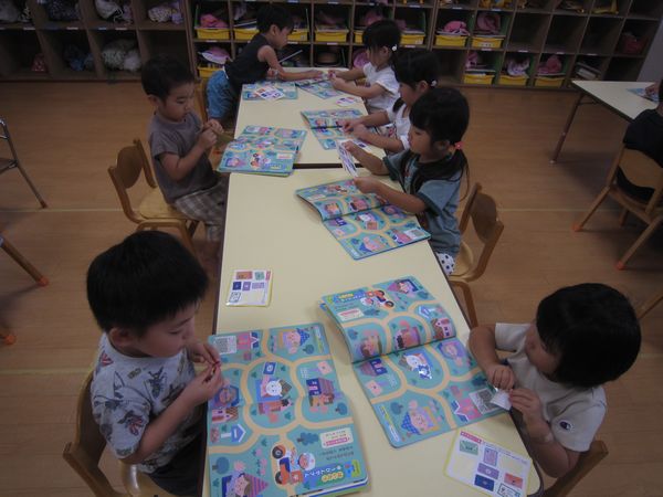 11日(水)は、月刊絵本を読みました。お月見のお話や、お手紙を配達するシールのページなど、秋を感じる楽しいお話がたくさんありました。