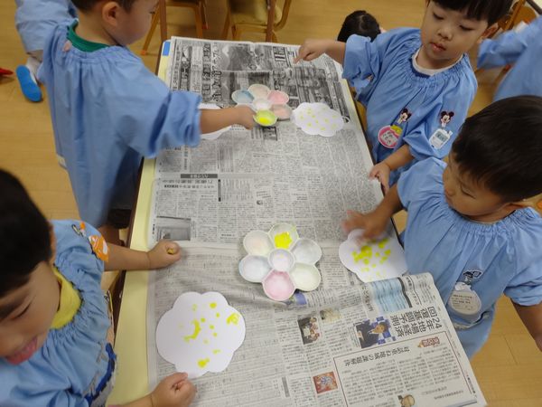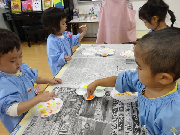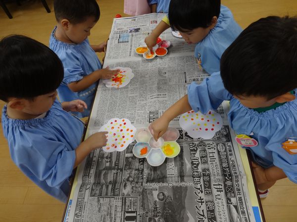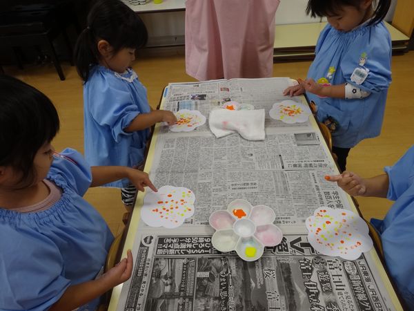 指スタンプで絵の具をしました。