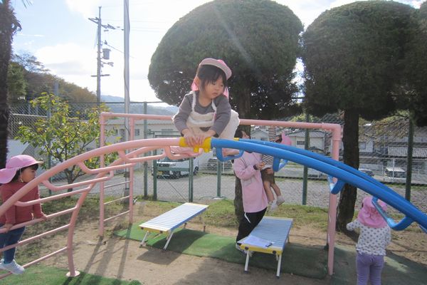 楽しみにしていた、遠足がありました。公園でどんぐりを拾ったり、滑り台、ブランコでたくさん遊びました。その後、幼稚園に戻ってひよこ組・いちご組さんと一緒にお弁当を食べました。