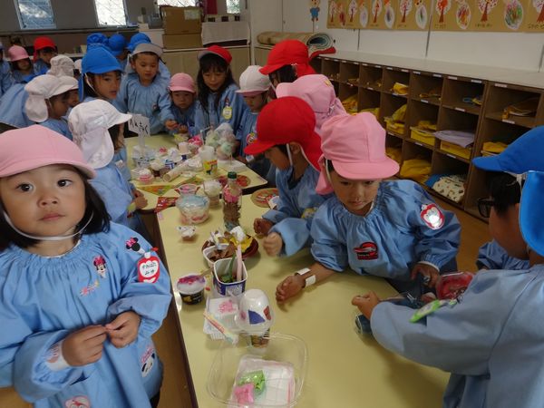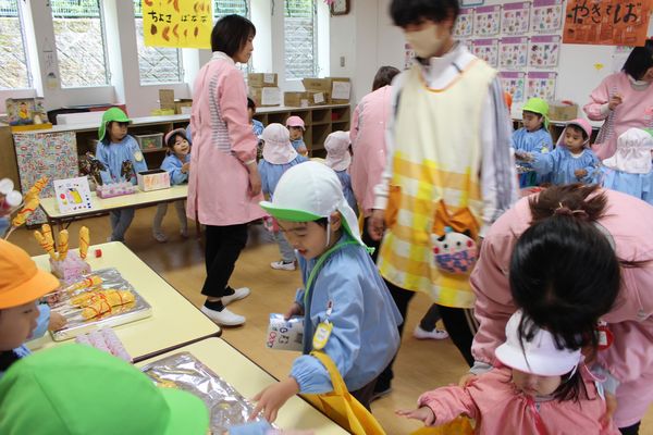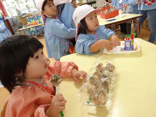 ひよこ組のお友達は、釣り堀で釣ったものをお店で交換して楽しみ、