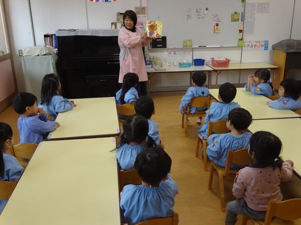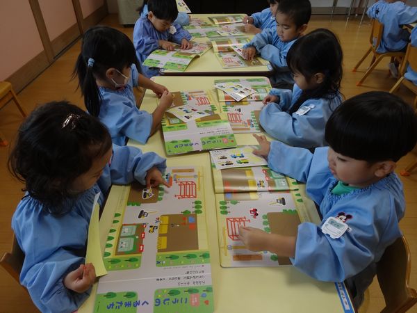 月刊絵本を読みました。シールを貼るのも楽しかったね!
