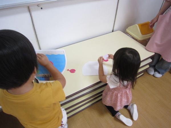 「きんぎょが逃げた」の大型絵本をみて、みんなも逃げた金魚を探しに行きました!