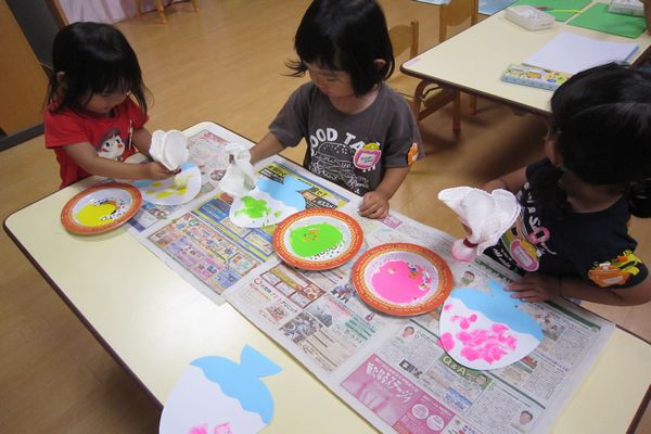 好きな色を使って画用紙にペタペタしました!