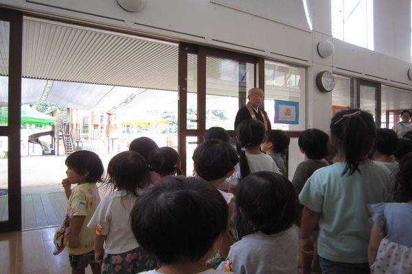 2学期の始業式がありました!みんなでホールで園長先生のお話を聞きました