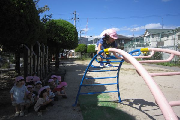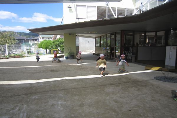☆太鼓橋をしたり、鬼ごっこをしたり、お外で元気いっぱい遊んでいます♪